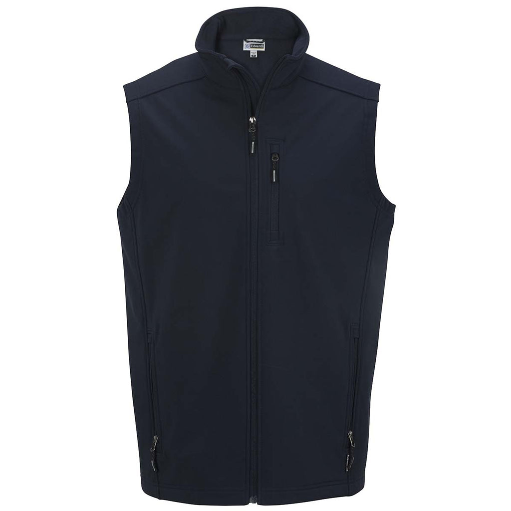Stay protected when the weather starts to turn in a custom embroidered Edwards Men's Navy Soft Shell Vest in three color options. Add a company logo or team name to these polyester rich spandex vests with microfleece inner layer for warmth. The lightweight vest offers 3 layer bonded fabric for both protection and versatility. Add your corporate embroidery to use these as part of employee apparel or as part of hospitality apparel for those who need to be outdoors, such as valets or attendants. The zippered front has zippered pockets and a full length wind guard. Easy to machine wash for repetitive wear.Highlights