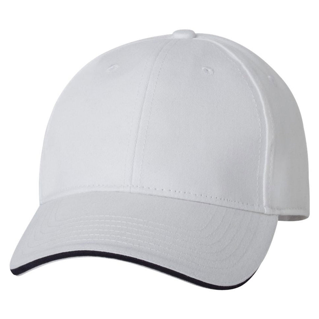 Bayside White/Navy USA-Made Structured Twill Cap with Sandwich Visor