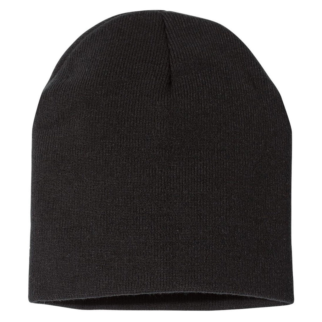 Hit the slopes or the skate park in an embroidered Bayside Black Union-Made 8.5 Beanie. The simplistic style of the acrylic knit beanie is comfortable and convenient. Top off a modern, hipster look with a custom logo beanie or stay protected when working in cooler temperatures. Also, great when simply enjoying the great outdoors skating, biking, or hiking. Due to style and fit, this beanie makes a great employee gift with a corporate logo at a great price. Order an entire case and give these out to new clients or use as promotional items to raise awareness.