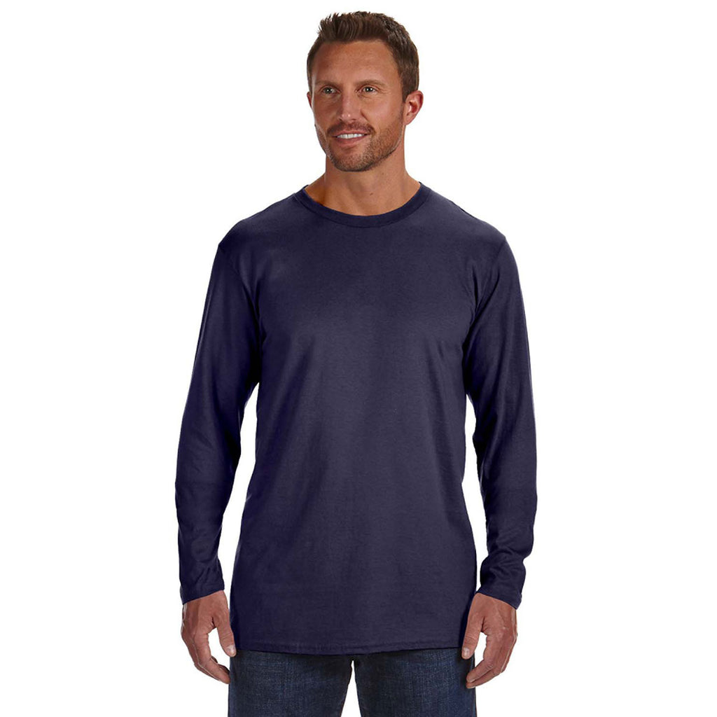 Hanes Men's Navy 4.5 oz. 100% Ringspun Cotton nano-T Long-Sleeve T-Shirt