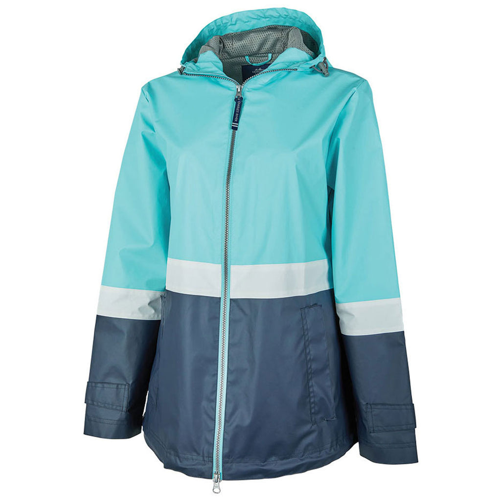 Charles River Women's Aqua/White/Navy Color Blocked New Englander Rain Jacket