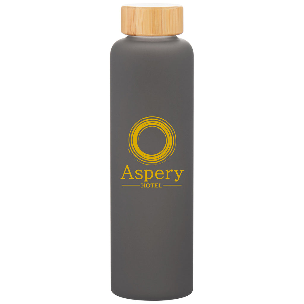 The H2Go Storm Grey Rincon 18 oz Water Bottle with printed logo is a great way to show appreciation to friends, family, and employees. The single wall borosilicate glass bottle has a threaded bamboo lid with translucent soft touch for cold beverage carried in style. Ideal as an event giveaway because the high-end glass creation is functional, yet beautiful. Only the best for your customers with this water bottle. Add a company logo to the bottle to use at recruiting events and trade shows. Place an order today for this unique opportunity to impress all those who receive this water bottle.The minimum order for this product is 48 pieces.