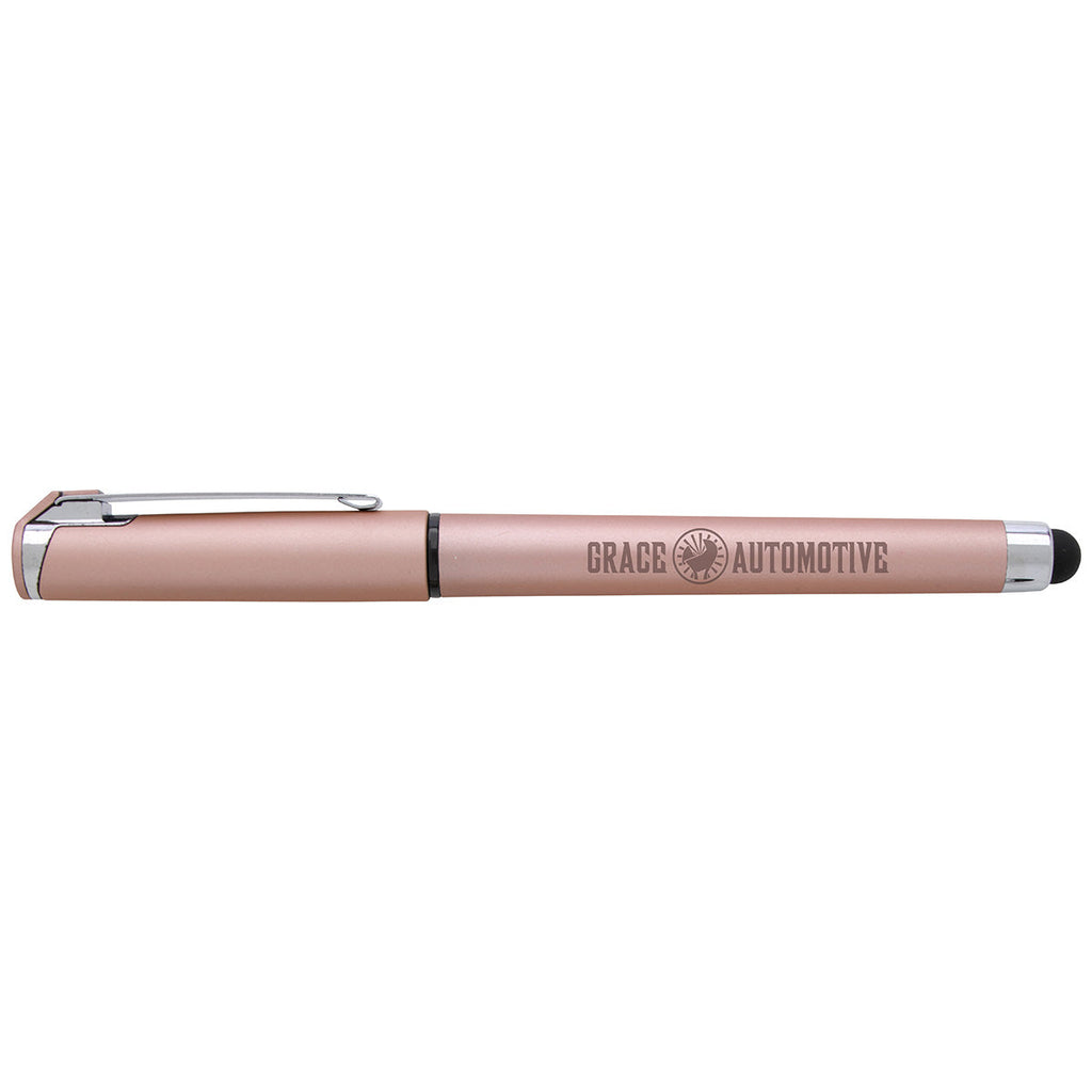 Add your custom logo to the Good Value Metallic Rose Gold with Black Ink Cali Stylus Pen to showcase your brand or organization. This stylus pen makes it easy to go from writing notes to working online with the attached stylus. This pen is ideal for work presentations, taking notes at school, or just sharing with others. Order plenty for your next event or to fill your office.
