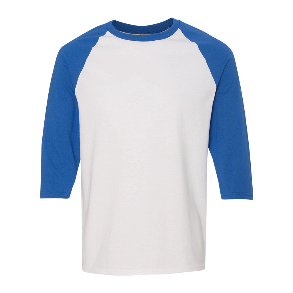 Gildan Men's White/Royal Heavy Cotton Raglan Three-Quarter Sleeve T-Shirt