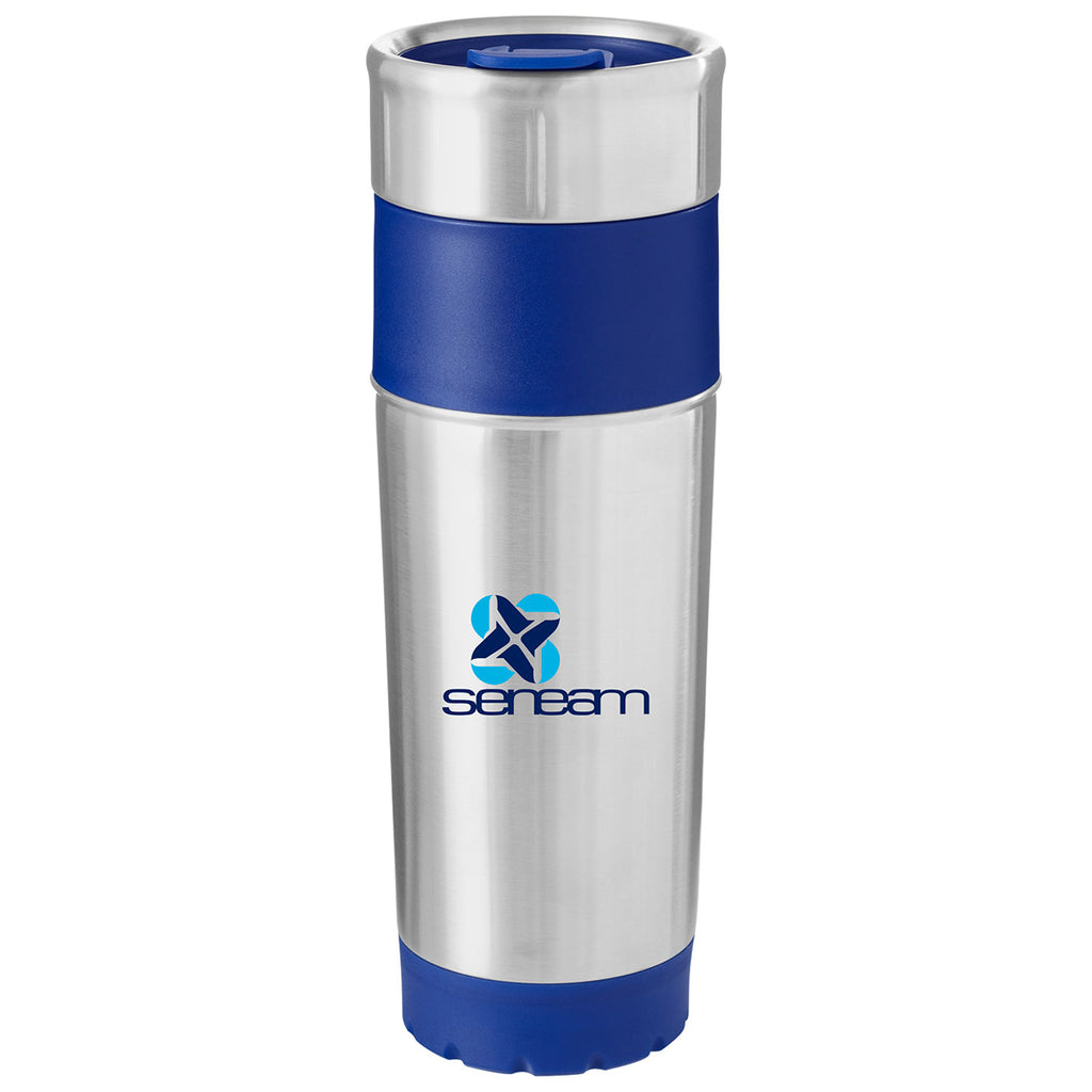 The ETS Blue 14 oz Stainless Steel Porter Tumbler is the perfect accessory for the work place. This has a plastic inner wall, threaded snap-fit lid, and color matching accents. Comes with 1 customizable color imprint per tumbler, which is great for company logos. This tumbler can be given as a welcoming gift for new employees and customer giveaways.