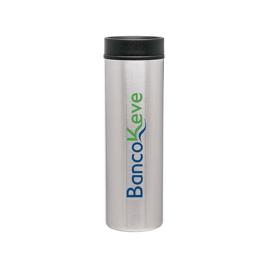 Take your beverage to go in this minimalist, ETS Stainless Montara Stainless Steel Tumbler 16 oz that features double wall insulation to ensure your beverage stays hot for hours. A push-on swivel minimizes effort for on the go user. Give away this personalized 16 oz tumbler as a gift with company's logo on it.
