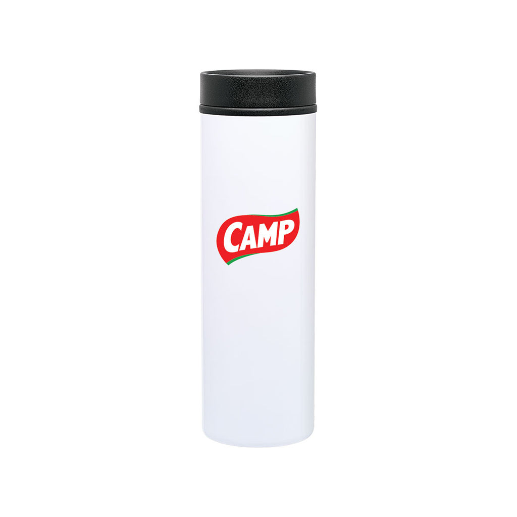 Take your beverage to go in this minimalist, ETS White Montara Stainless Steel Tumbler 16 oz that features double wall insulation to ensure your beverage stays hot for hours. A push-on swivel minimizes effort for on the go user. Give away this personalized 16 oz tumbler as a gift with company's logo on it.