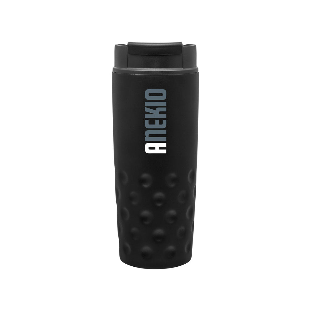 This ETS Matte Black Spoleto Stainless Steel Tumbler 16.9 oz boasts 18/8 grade construction and features copper vacuum insulation and one-touch push-button lid with locking mechanism. Made to lock in cold for cold beverages and heat for warm beverages. It can be customized with your company's custom imprinted logo for corporate giveaways.