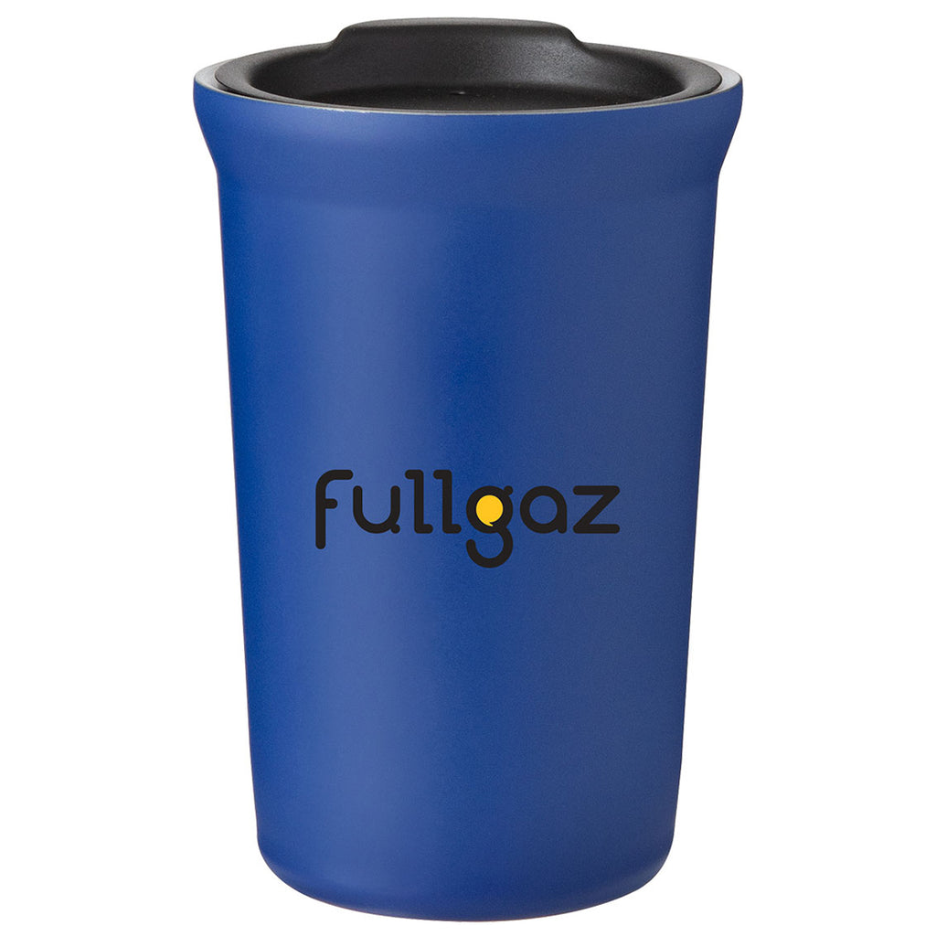 The ETS Matte Blue 12 oz Stainless Steel Hudson Tumbler has copper vacuum insulation and a push-on lid with thumb tab, which provides better insulation and spill prevention. Keeps hot drinks heated for 8 hours and cold drinks cool for 16 hours. This is a great buy for customer giveaways, and includes 1 custom color imprint per tumbler.