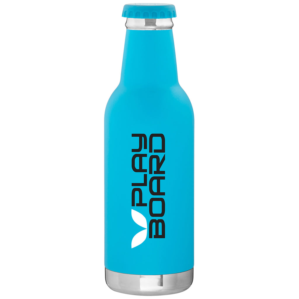 H2Go Matte Aqua Retro 20.9 Water Bottle with custom logo is a fun and unique water bottle that will get people to take a second look. The water bottle that is reminiscent of an old glass soda bottle is a wonderful way to showcase your company logo at trade shows or recruiting events. The insulated lid with soft touch grip has a high polish rim and powder coated finish. Your printed logo will be the star of the show wherever this water bottle is carried. The larger size is perfect for all day enjoyment, camping, or just staying hydrated at home. Place an order today.The minimum order for this product is 48 pieces.