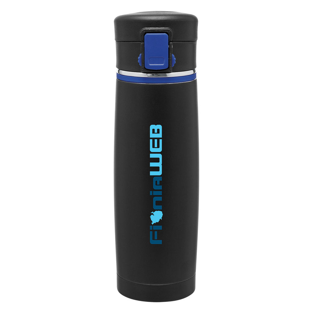 This ETS Black/Blue Viper Black Stainless Steel Tumbler 16 oz has all you need for on-the-go hydration - double wall design, ample 16 oz capacity, copper insulation, and lockable push-button lid. As a corporate giveaway, it will be appreciated by the recipient and will make a permanent reminder of the company or brand.