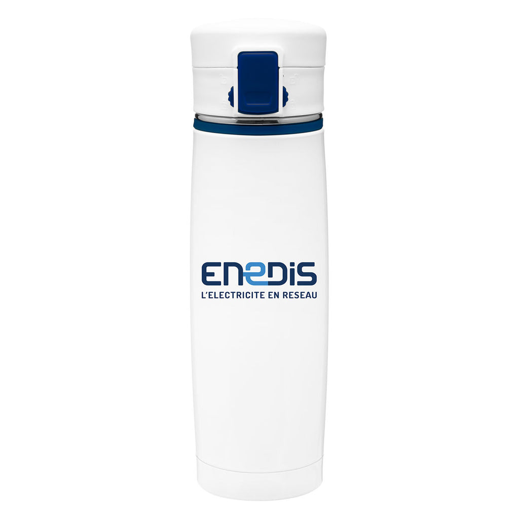 Copper vacuum insulation fused with 18/8 grade stainless steel construction, lock mechanism, and push-button lid highlights this 16oz. tumbler. It keeps drinks fresh at an optimum temperature for hours. An ample print space allows ETS White/Navy Blue Viper White Stainless Steel Tumbler 16 oz to feature custom logo imprint for use as a corporate gift or in promotional campaigns.