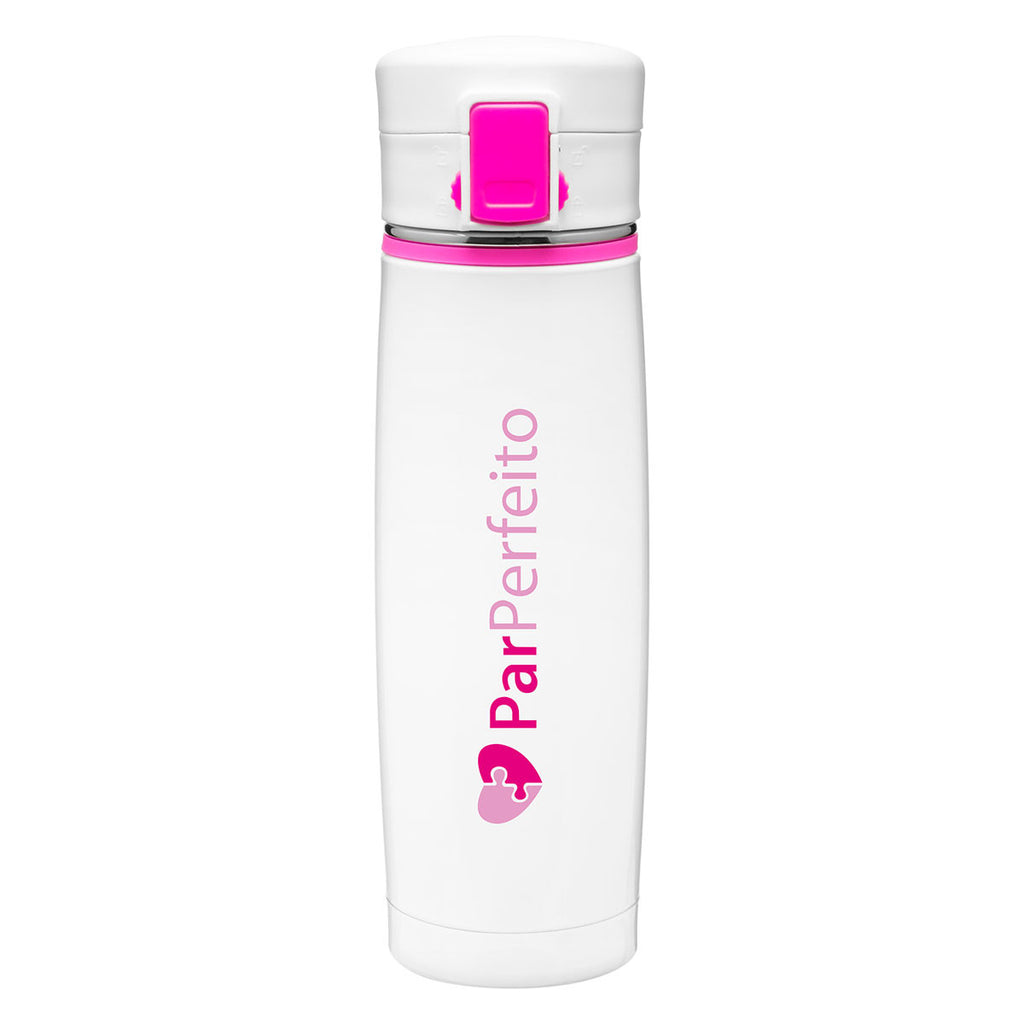 Copper vacuum insulation fused with 18/8 grade stainless steel construction, lock mechanism, and push-button lid highlights this 16oz. tumbler. It keeps drinks fresh at an optimum temperature for hours. An ample print space allows ETS White/Pink Viper White Stainless Steel Tumbler 16 oz to feature custom logo imprint for use as a corporate gift or in promotional campaigns.