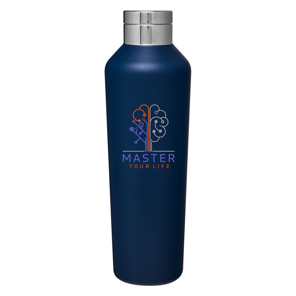 Sport your company's custom logo or tagline everywhere with this 20.9 oz. H2Go Matte Navy Manhattan Tumbler. Made from stainless steel, it does not retain beverage taste. Perfect for a promotional event, customize with a name or logo and give out employees or customers. Comes equipped with threaded steel insulated lid, and powder coated finish. An economical way to enlighten customers about your business or event. Individually retail packaged in gift box.The minimum order for this product is 48 pieces.