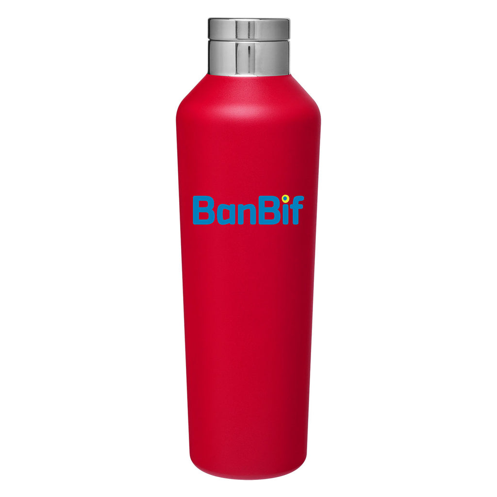 Sport your company's custom logo or tagline everywhere with this 20.9 oz. H2Go Matte Red Manhattan Tumbler. Made from stainless steel, it does not retain beverage taste. Perfect for a promotional event, customize with a name or logo and give out employees or customers. Comes equipped with threaded steel insulated lid, and powder coated finish. An economical way to enlighten customers about your business or event. Individually retail packaged in gift box.The minimum order for this product is 48 pieces.