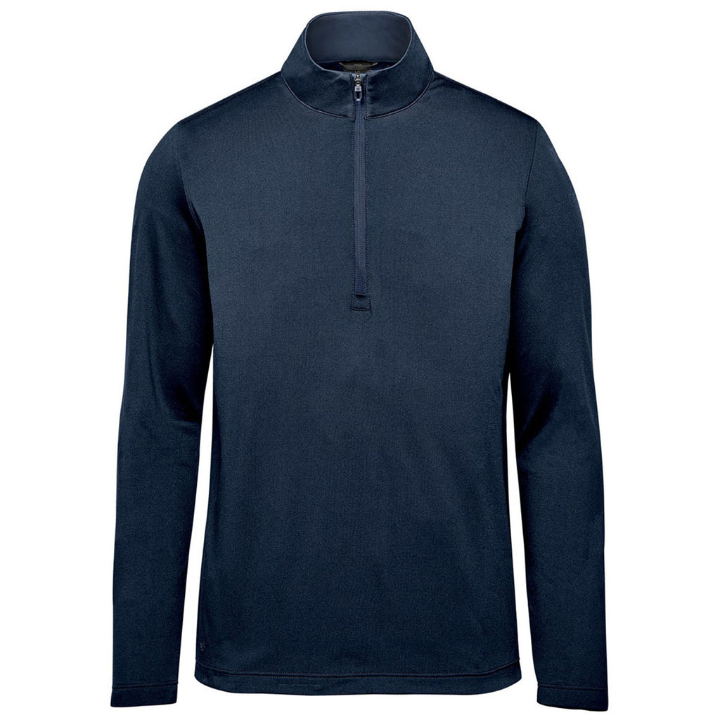 Stormtech Men's Midnight/Dusk Zermatt 1/4 Zip Pullover delivers classic style and modern performance in a custom layering essential. The smooth, technical fabric wicks away moisture and holds its shape, while the quarter-zip design allows easy ventilation. Ideal for uniforms or promotional wear, it's a versatile piece that transitions seamlessly from office to outdoor settings.