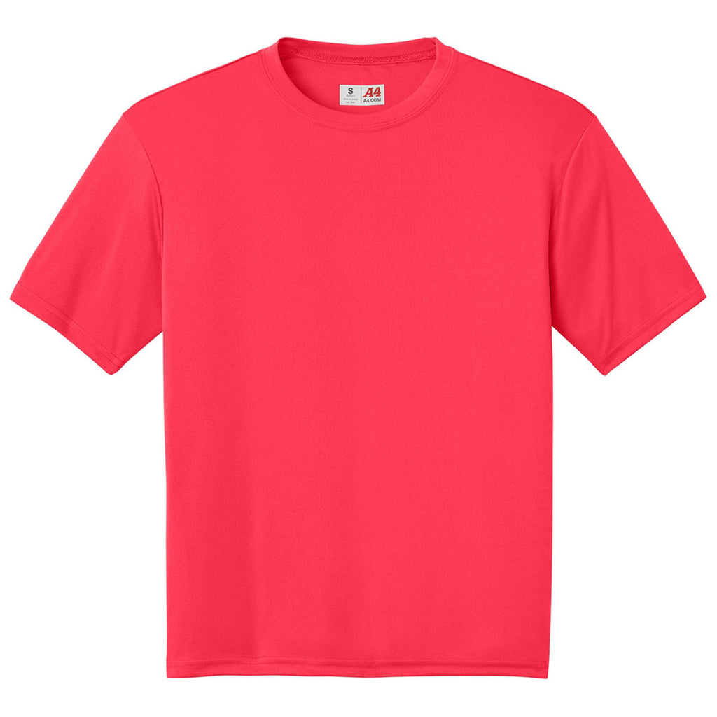 Keep cool with the A4 Men's Coral Cooling Performance Short Sleeve Tee. Built with moisture-wicking fabric, this tee is designed for workouts, sports, or active jobs. Customize it with your logo to create branded apparel that's functional and comfortable. Its lightweight design makes it a reliable choice for corporate promotions or team uniforms.Highlights