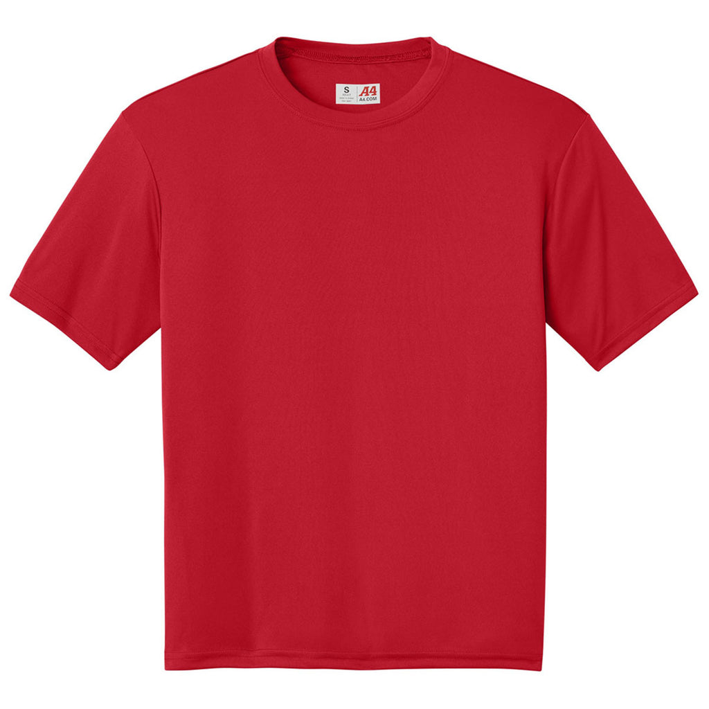 Keep cool with the A4 Men's Scarlet Cooling Performance Short Sleeve Tee. Built with moisture-wicking fabric, this tee is designed for workouts, sports, or active jobs. Customize it with your logo to create branded apparel that's functional and comfortable. Its lightweight design makes it a reliable choice for corporate promotions or team uniforms.Corresponding Women's Style: A4 Women's Scarlet Cooling Performance Short Sleeve Tee