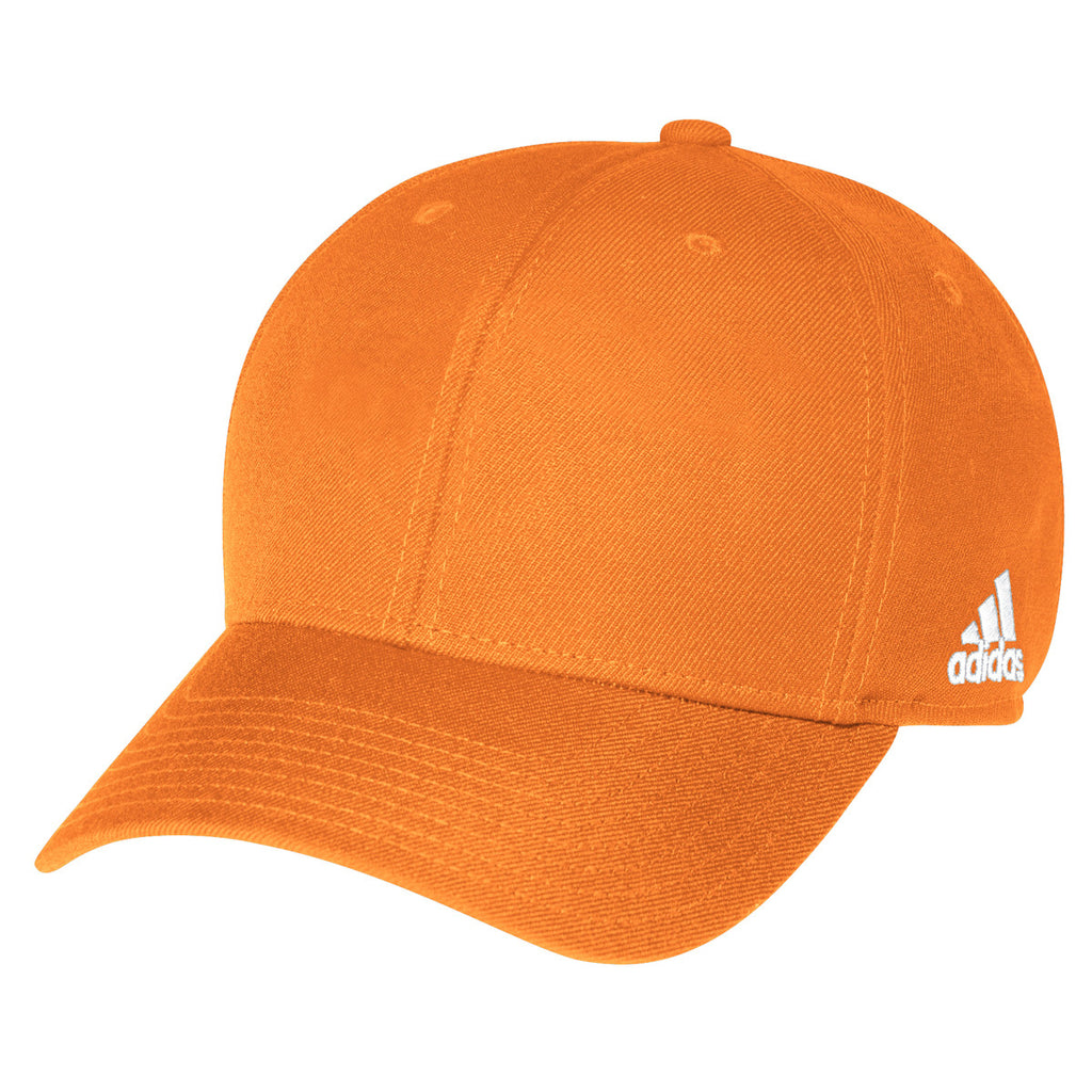 Celebrate your company's team spirit by giving the adidas Orange Structured Adjustable Cap during the holiday season. You attach the company logo to the front of the hat to promote unity. A moisture wicking sweatband quickly removes perspiration that builds up under the highly durable cap. Cotton twill feels soft against the forehead and the adjustable Velcro closure adapts to virtually every head size.