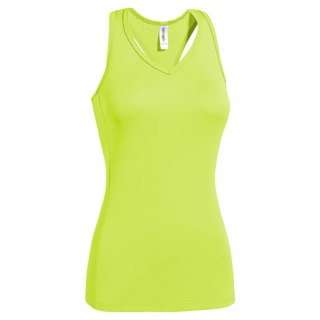 Get to the gym in this Expert Women's Safety Yellow Workout Tech Racerback - a fit-spired update to the classic tank top. Mesh side panels make for range of motion and ensure ultimate breathability during a tough workout. Racerback cut leaves your arms feeling comfortably free powering you up through push-ups, squats or Zumba class. Crafted from 100% microfiber polyester pk maX with eyelet mesh contrast. Treated with BodyFreshe to inhibit bacteria growth while moisture-wicking material keeps sweat at bay. Customize this women's activewear top with a logo of your company or studio for swag giveaway or custom merchandise purpose.The minimum order for this product is 12 pieces.