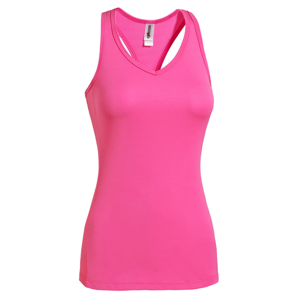 Get to the gym in this Expert Women's Hot Pink Workout Tech Racerback - a fit-spired update to the classic tank top. Mesh side panels make for range of motion and ensure ultimate breathability during a tough workout. Racerback cut leaves your arms feeling comfortably free powering you up through push-ups, squats or Zumba class. Crafted from 100% microfiber polyester pk maX with eyelet mesh contrast. Treated with BodyFreshe to inhibit bacteria growth while moisture-wicking material keeps sweat at bay. Customize this women's activewear top with a logo of your company or studio for swag giveaway or custom merchandise purpose.