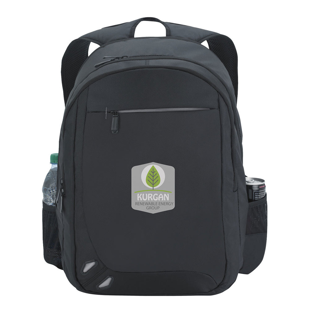 For professionals that use tablets and laptops, the Atchison Black Premiere Backpack takes care of your storage needs. Laptops up to 15 inches long fit inside of the padded laptop-only section of the backpack. A separate padded tablet sleeve helps you expand your electronic device power on the road. The padded back panel cushions constant impacts of the backpack against your back. Adjustable shoulder straps allow you to secure the backpack, without feeling much of the pressure of carrying a heavy load on your back and shoulders. Attach a custom logo on the large imprint area to create a walking billboard for your company. The minimum order for this product is 25 pieces.Highlights
