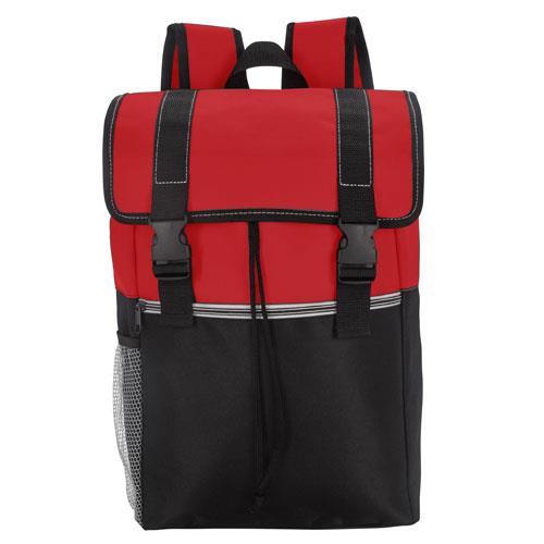 Promote your company or events with this customizable Atchison Red Snap Down Rucksack Backpack. This rucksack style backpack lets recipients carry books, clothes and other personal items with ease for school, camping trips or travel. Customize with your logo and hand out to customers, students, or prospects at next big event. Highlights include a main compartment with cinch closure, zippered pocket and dual padded shoulder straps.