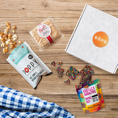 The Batch & Bodega White Hopscotch Batch - Mini is a sweet little treat set that is perfect for welcoming employees to the office or showing your team how much you care. Your custom logo will look great when it's added to the stylish gift box, which contains an array of gourmet snacks.