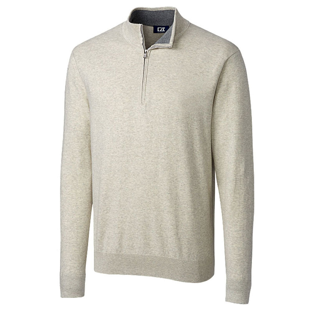 The Cutter & Buck Men's Oatmeal Heather Tall Lakemont Half-Zip is the perfect canvas for your company's custom logo. The mix of cotton, nylon, and spandex on this half-zip provides all day wearable comfort for your employees. The half-zip is accentuated with a secondary color on the inside part to create a more vibration and fashionable look. The design on this half-zip outfit is suitable for many fashionable design needs and is comfortable for all people to wear during any special outside event. The good layout has enough room for a custom logo on the front to add a nice personalized touch all the way through.Highlights