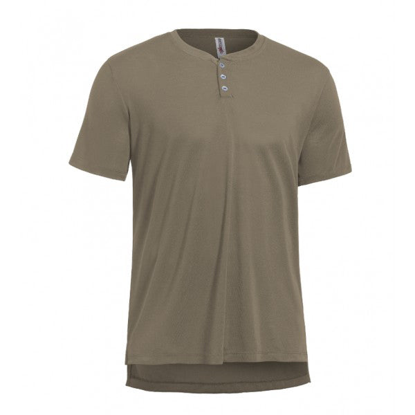 With a sleek three-button placket, the logoed Expert Men's Olive Siro Short Sleeve Henley makes a fashion splash everywhere you travel on business. With professional peers praising your taste for corporate apparel, why not give them something more to praise by displaying a custom logo on the large imprint area With logoed apparel, you expand awareness for your company at busy airport terminals. The two-inch drop tail with split at side hem creates a relaxed fit for business meetings and casual dinners with friends. One-hundred percent micro polyester handles any activity you throw at the long lasting fabric.