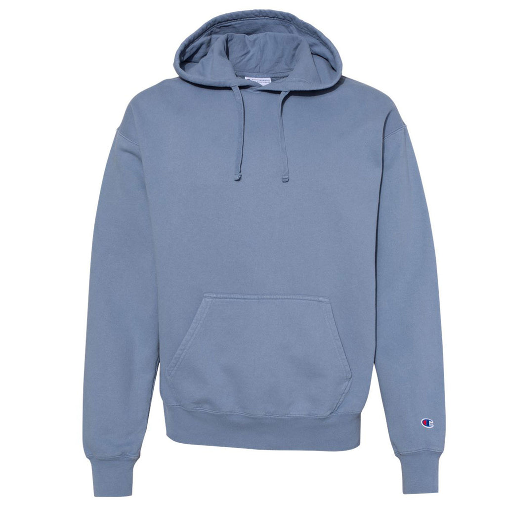 Conquer the world in a custom screen print Champion Men's Saltwater Garment Dyed Hooded Sweatshirt. Created from a no shrink cotton rich polyester blend with double knit stitching throughout, this hooded sweatshirt is a must have for most wardrobes. The jersey lined hood with drawstring is perfect for an early morning or late-night run as part of athleisure apparel collections or can carry a corporate logo to be used as employee gifts. The kanga-pocket keeps a phone and keys close at hand as you go about your day with planned activities and events. Create a fully custom logo to use these hooded sweatshirts for corporate events or trade shows as a way to showcase your company. This is one of the most cost-effective ways to get your name out on a functional product.