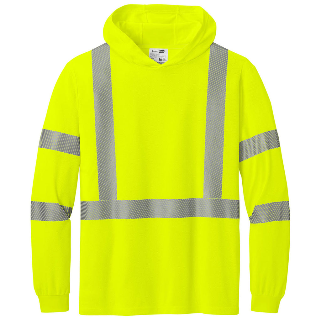CornerStone Men's Safety Yellow ANSI 107 Class 3 Long Sleeve Segmented Tape Hooded Tee