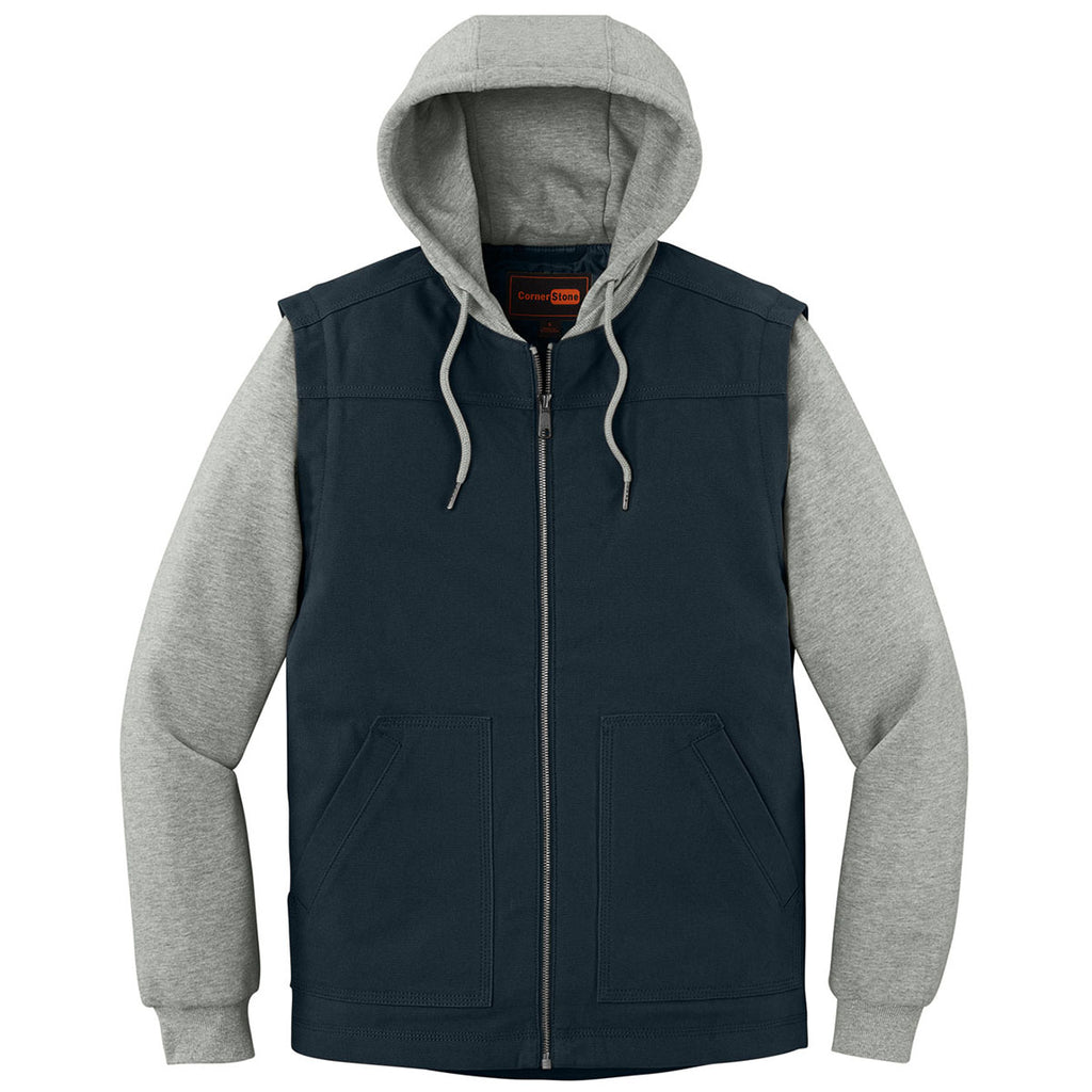 CornerStone Men's Navy/Heather Grey Duck Fleece Full-Zip Hooded Jacket