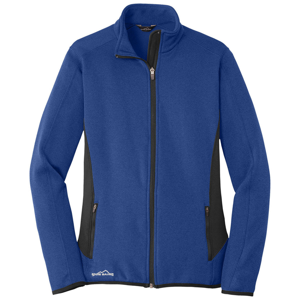 When you need to move around, whether it's outdoors decorating for the holidays or indoors competing in a league game, you want a fleece jacket designed to maximize movement. The Eddie Bauer Women's Blue Heather Full-Zip Heather Stretch Fleece Jacket gives you the movement flexibility to complete home improvement projects and compete in your favorite sport. Highly breathable brushed back fleece quickly removes the sweat that builds up on your skin. Take advantage of the imprint area on the jacket to attach your company logo. Enjoy the convenience of storing personal possessions in one of the rust resistant front zippered pockets.