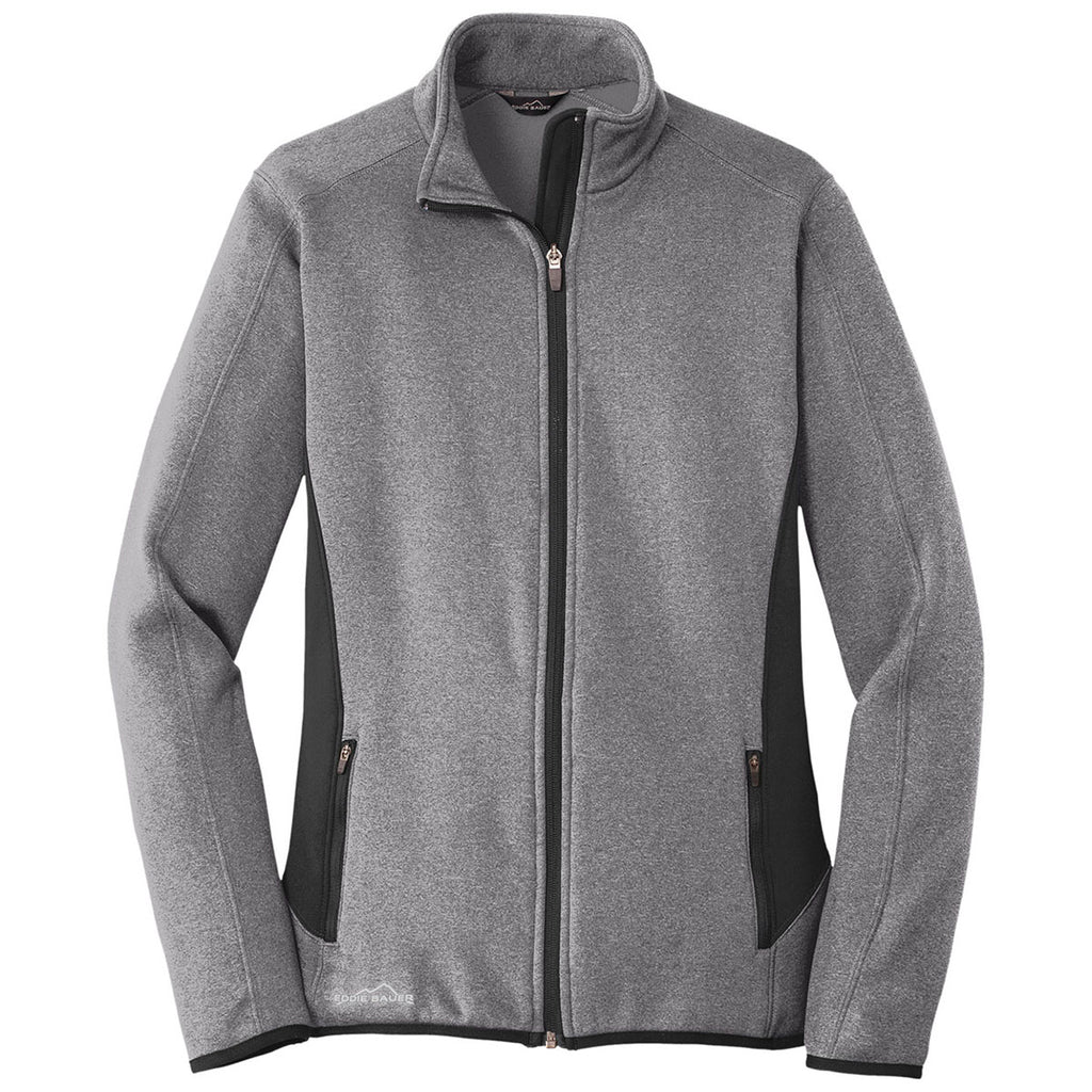 When you need to move around, whether it's outdoors decorating for the holidays or indoors competing in a league game, you want a fleece jacket designed to maximize movement. The Eddie Bauer Women's Grey Heather Full-Zip Heather Stretch Fleece Jacket gives you the movement flexibility to complete home improvement projects and compete in your favorite sport. Highly breathable brushed back fleece quickly removes the sweat that builds up on your skin. Take advantage of the imprint area on the jacket to attach your company logo. Enjoy the convenience of storing personal possessions in one of the rust resistant front zippered pockets.