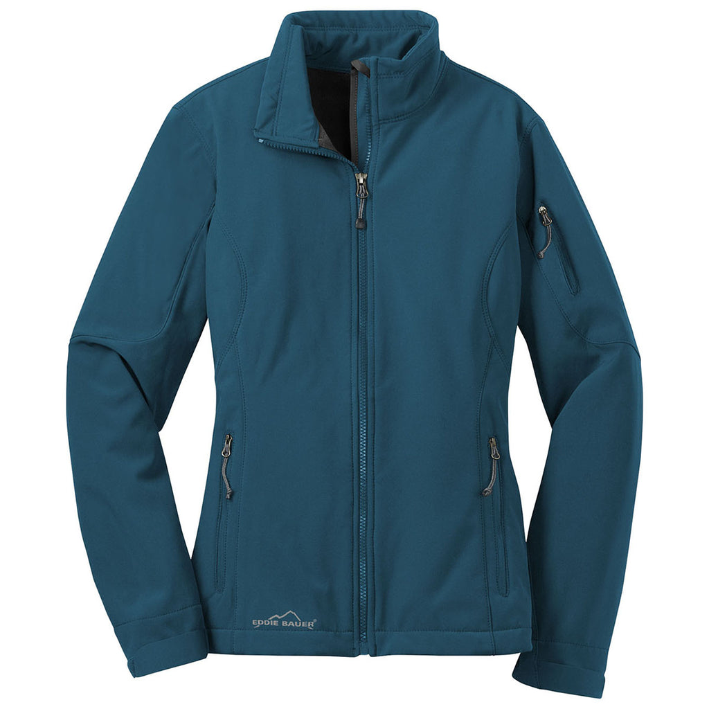 Short of an igloo, nothing stops weather in its tracks quite like a softshell jacket. The Eddie Bauer Women's Dark Adriatic Blue Softshell Jacket is no slouch either. It's a weather-stopping, three-layer softshell featuring 3000MM rated waterproof fabric and 3000G/M2 breathability. The princess seams keep it contoured to match your fit, while the zippered left sleeve pocket and adjustable tab cuffs provide a world-ready utility that can't be matched by most jackets that are also this comfortable. An embroidered corporate or company logo would make this the ideal professional layering item across most of the year's seasons, especially in cool climates.