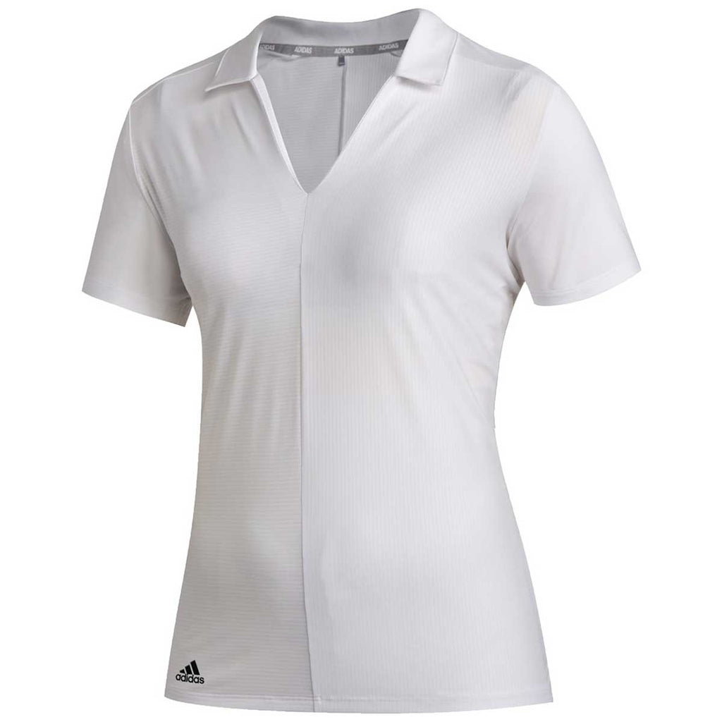 Enjoy a custom look with the Adidas Women's White Aeroready Short Sleeve Polo. The sleek design of this polo is the perfect corporate apparel look for the professional woman. The soft, drapey material creates a feminine modern silhouette with a V-neck in the woven material. Add a company logo to use these as employee apparel or give as gifts to those who appreciate the finer things in life. The Aeroready technology allows you to feel comfortable and ready for whatever the day throws at you with moisture absorption technology