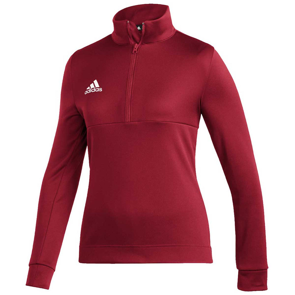 Add embroidery to the Adidas Women's Team Power Red/White Team Issue 1/4 Zip for a look that will stand out on the track, at the gym, or wherever you happen to be. The gorgeous mixed material 1/4 zip has Aeroready technology to help keep you dry with moisture management that keeps you ready for the day. Wear alone or layered with a 1/4 center zipper and stand up collar for protection from the wind. This 1/4 zip has a soft feel and is fast drying for after workout cleaning. Highly durable, add a custom logo to the pullover to use as a team uniform, employee gift, or even employee apparel.
