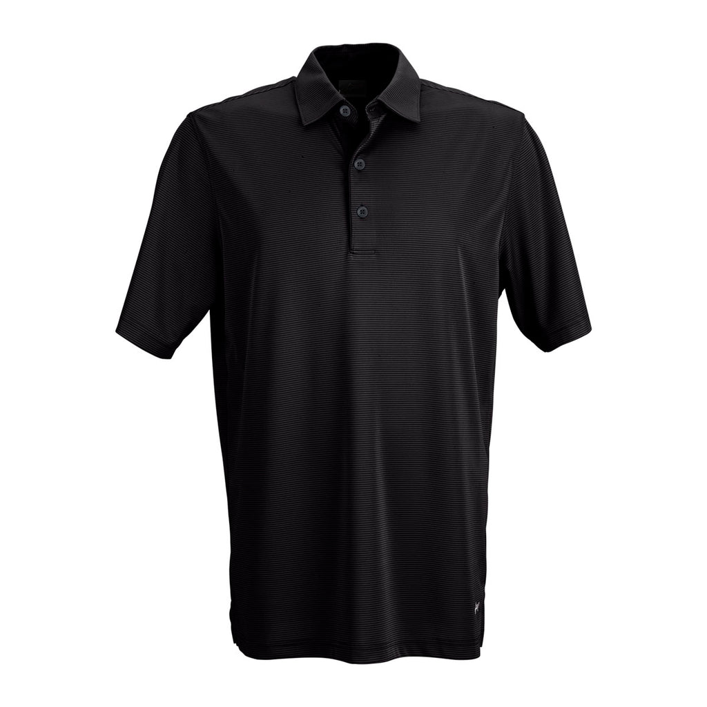 Lightweight polyester makes the embroidered Greg Norman Men's Black Play Dry ML75 Tonal Stripe Polo the ultimate corporate apparel to wear on the golf course. The fabric is light in weight, but not a lightweight when it comes to rugged durability. Wear the fashionable polo under a blazer and take the blazer off after a company event to kick back at your favorite restaurant. Enjoy the compliments you receive for the dazzling self-good collar and the shark emblem that everyone associates with legendary Greg Norman. Add your corporate logo on the large imprint area to boost your company image.Highlights