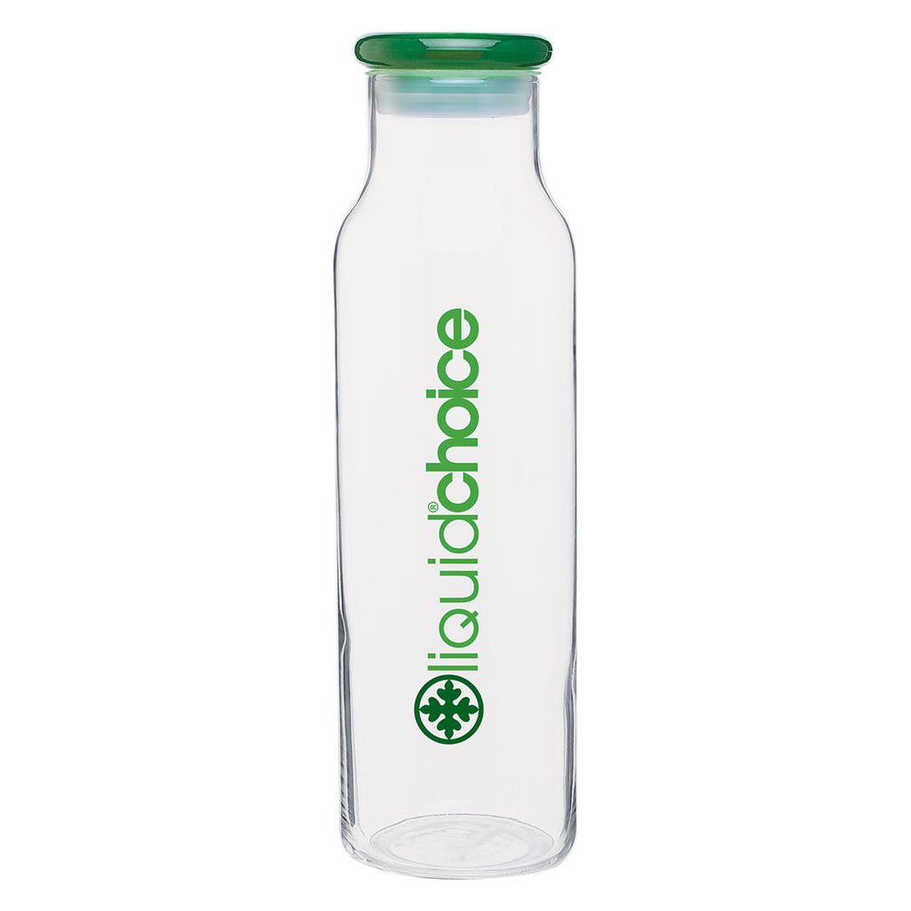 A sleek, sophisticated, and classic single-wall H2Go Apple Vibe Glass Bottle 22 oz intended to be reusable glassware to cut down on plastic waste. It has a generous 22-oz capacity and features a push-on lid. Represent your brand message in an elegant and professional way using this customized bottle as promotional corporate gift.