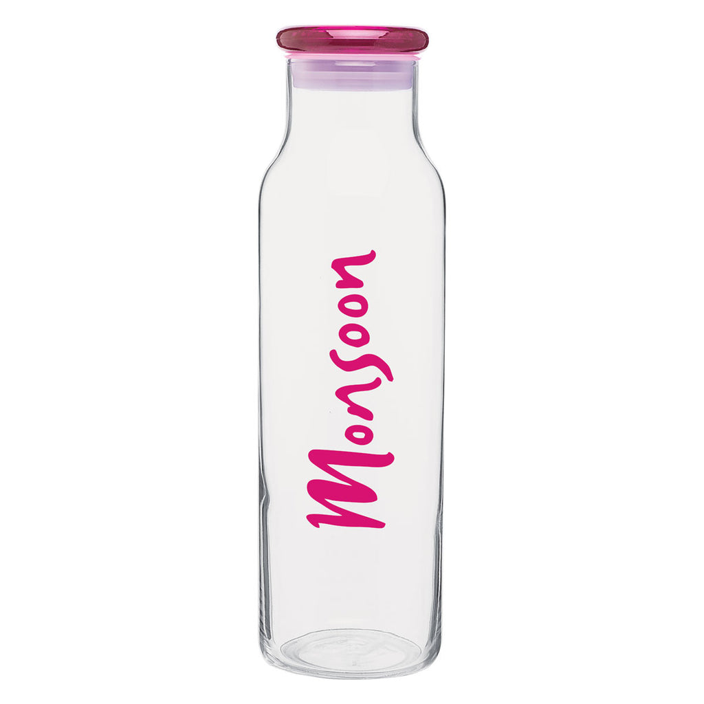 A sleek, sophisticated, and classic single-wall H2Go Fuchsia Vibe Glass Bottle 22 oz intended to be reusable glassware to cut down on plastic waste. It has a generous 22-oz capacity and features a push-on lid. Represent your brand message in an elegant and professional way using this customized bottle as promotional corporate gift.