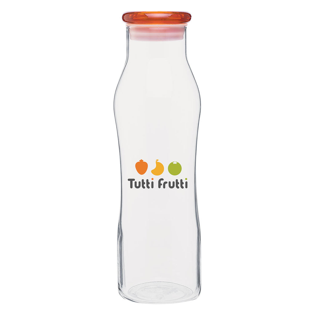This single wall glass bottle is no-frills in real terms! It's a sleek, curvy, and minimal container to store fluids. With a push-on lid and 20-oz capacity, this H2Go Tangerine Vue Glass Bottle 20 oz is ideal for on-the-go or indoor use. Personalize it with a logo imprint for your brand.