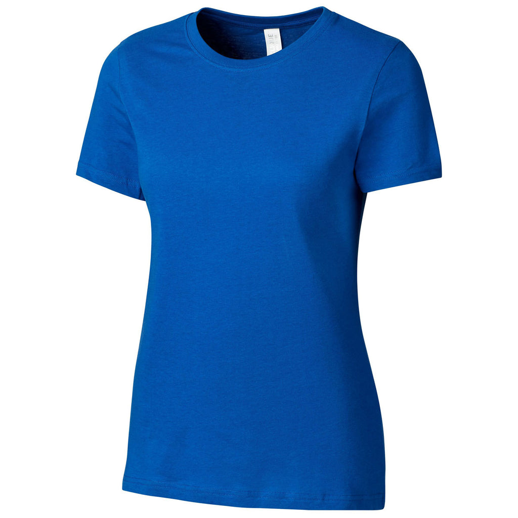 Change how your employees view corporate apparel by giving away the Clique Women's Royal Blue Playlist Tee. The stylish tee makes an ideal promotional gift at sales conferences and industry trade shows. Screen print a custom logo on the tee to connect your brand to high quality products and services. Designed with 100% ringspun cotton, the super soft tee delivers optimal comfort throughout a busy day competing in a company sponsored golf tournament. Side seam resist rips and tears to give you a versatile tee to wear at work and play for years to come.Corresponding Men's Style: Clique Men's Royal Blue Playlist Tee