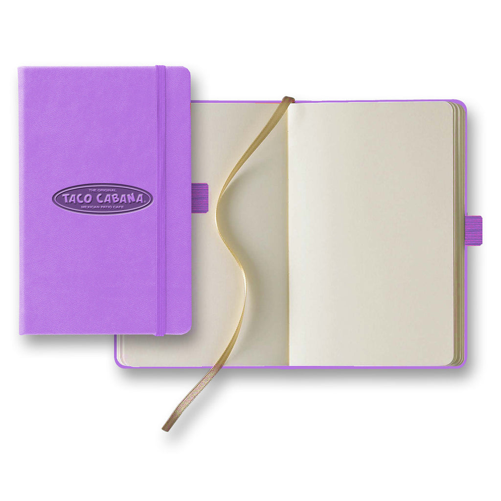 Pen down everything from thoughts to special memories to notes with this nicely designed Tucson Small Ivory journal that features 192 blank pages, elastic closure, back pocket and ribbon marker. Make this journal completely unique and special with custom foil imprint of your company's logo or special message.