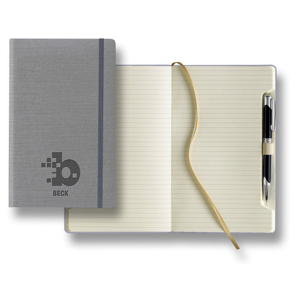 El Dorado Scribe Ivory is a no-nonsense, quality notebook that works flawlessly as a standalone or in a traveler's journal. It contains 240 die-cut lined, tabbed pages of Ivory paper that stand up to just about any pen. Its soft, elegant cover can be custom imprinted with company's logo debossing.