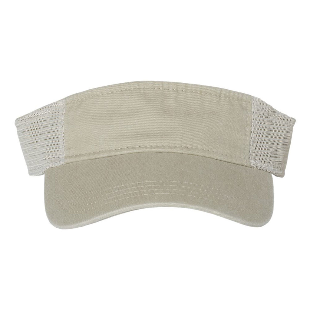 Get ready for warmer weather with embroidery on the Sportsman Men's Stone/Stone Pigment-Dyed Trucker Visor. This trucker style visor looks like a typical visor with mesh overlay on the sides and hook and loop closure for adjustable fit. The one size fits most style can be embroidered with your company logo as part of a uniform or a custom logo to show your own personal style and brand. The cotton polyester blend is pigment dyed with a 2 1/4 inch crown that makes it perfect for outdoor wear on the golf course or while gardening.Highlights