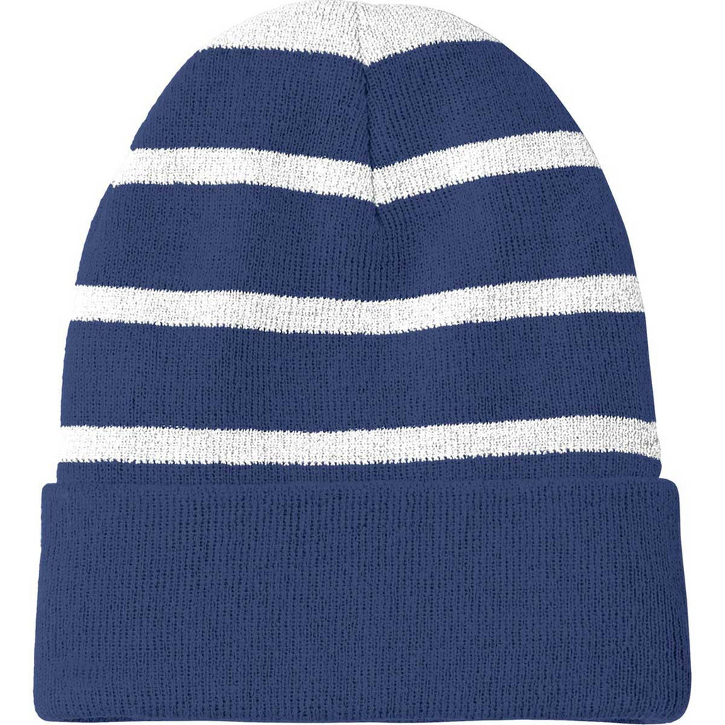 Sport-Tek Team Navy/Silver Striped Beanie with Solid Band