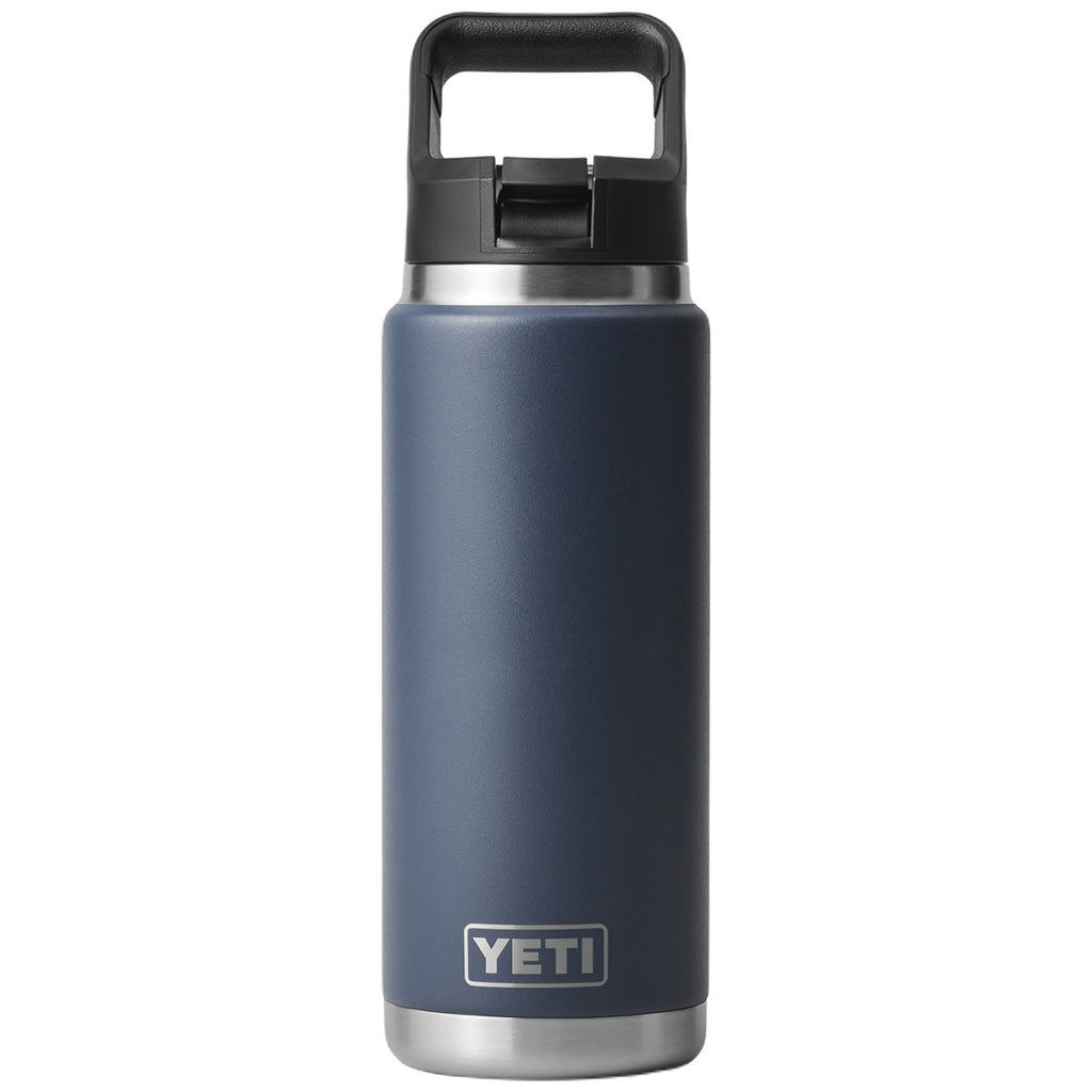If keeping your team hydrated is essential, add your company's custom logo or design to the YETI Navy Rambler 26 oz Water Bottle W/Straw Cap. This sleek accessory features a sleek, stylish design that everyone will want to show off. Superior insulation means it keeps beverages cold or hot all day long.